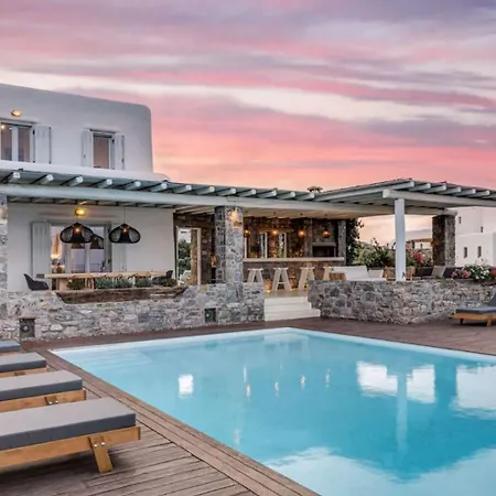 Die Villa Super Paradise Mikonos verfügt über eine Terrasse mit Blick aufs Meer und ist 10 Autominuten vom Flughafen Mykonos entfernt gelegen.